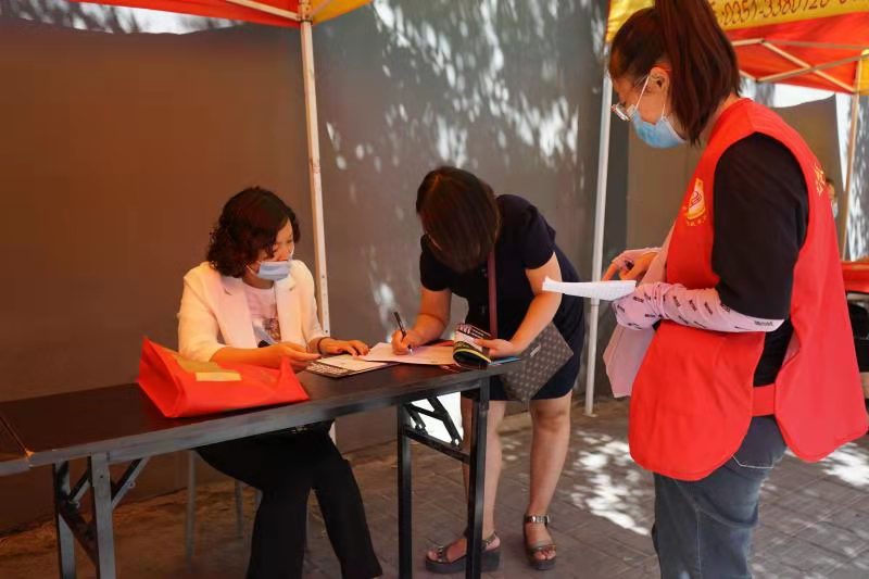 活動現場,各招聘單位的咨詢臺整齊地排成一列,不時有行人上前咨詢用人單位相關信息。其中,有的是為了剛到太原的親戚找份工作的居民,有的是剛剛退休還不想閑下來的退休職工,還有的是想在暑假鍛煉一下的大學生。除了各招聘單位的相關工作人員外,還有來自街道的二十余名志愿者在現場隨時為大家提供相關咨詢服務。