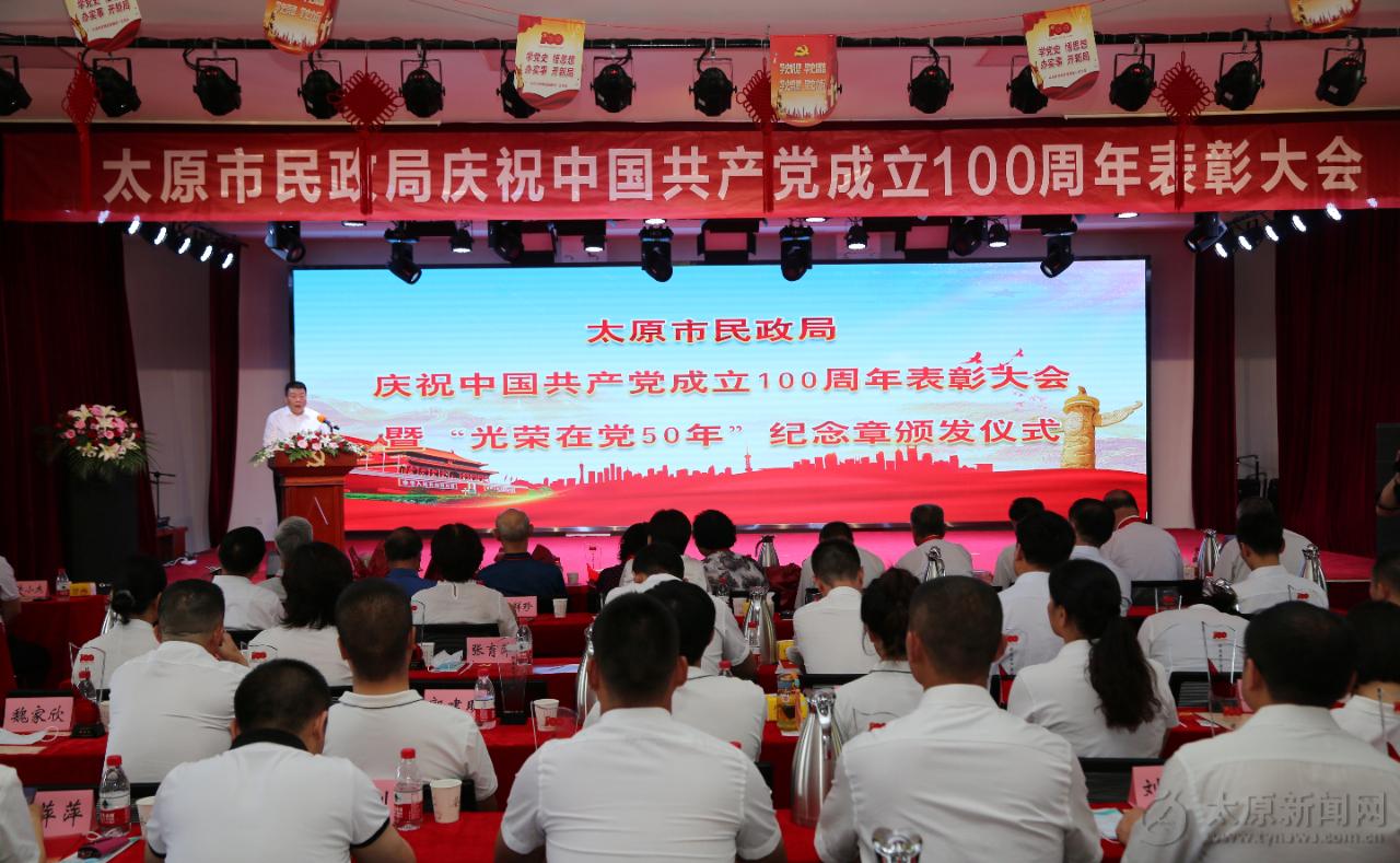 6月30日下午,太原市民政局舉行慶祝中國(guó)共產(chǎn)黨成立100周年表彰大會(huì)暨“光榮在黨50年”紀(jì)念章頒發(fā)儀式。