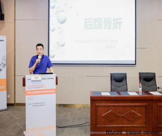 太原市中心醫院骨科汾東一病區主任杜虎羽講授了《跟骨骨折畸形愈合的診斷治療》,跟骨骨折也是比較常見的骨折,因跟骨骨折形態不規則,復位較為困難,手術經驗不足很可能會造成跟骨的畸形愈合,造成嚴重的后果,杜主任不僅闡述了跟骨畸形愈合的治療,還強調跟骨骨折初次手術解剖復位的重要性。