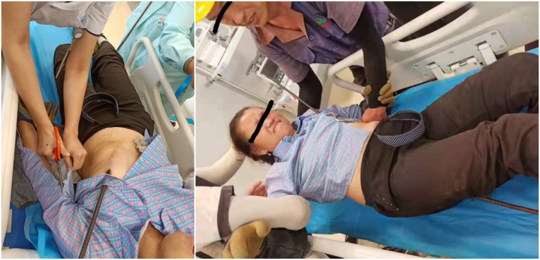 短暫的討論研究后,醫(yī)生決定先向119求救,讓消防員戰(zhàn)士把體外多余的鋼筋拆除,并確保鋼筋不會再次對患者造成2次損傷,最大程度保護(hù)患者安全!在等待119到來的過程中,給予患者配血等對癥治療。