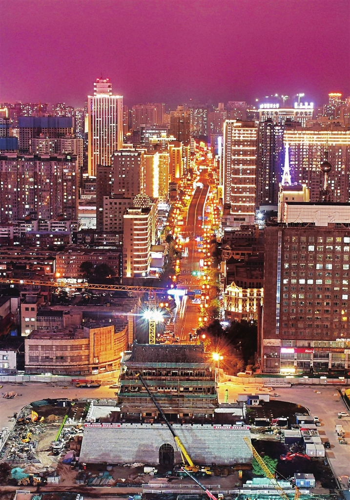 7月27日夜,五一廣場改造現(xiàn)場燈火通明,首義門主體建設(shè)進(jìn)入尾聲。改造后的五一廣場將更好地彰顯古城文化特色,提升城市影響力。
