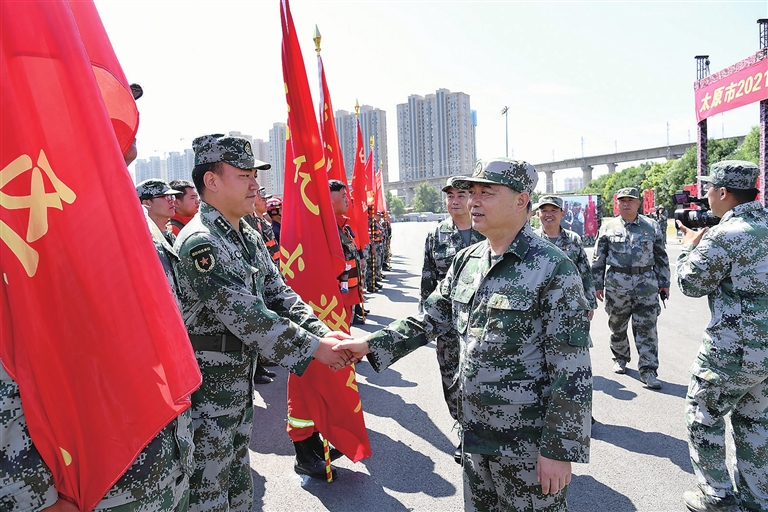 沙場點雄兵,熱血固金甌。在中國人民解放軍建軍94周年之際,省委常委、市委書記、太原警備區(qū)黨委第一書記、市國防動員委員會第一主任羅清宇,市委副書記、市長、市國防動員委員會主任張新偉等市黨政軍領導參加軍事日活動,觀摩軍地聯(lián)合演練,看望慰問部隊官兵,接受國防軍事教育。市委副書記、政法委書記李新春,市人大常委會主任魏民,市政協(xié)主席操學誠,市委常委、太原警備區(qū)司令員王志校,市委常委,市人大常委會、市政府、市政協(xié)有關負責同志,市法院、市檢察院、市國防動員委員會成員單位、各縣(市、區(qū))主要負責同志參加。