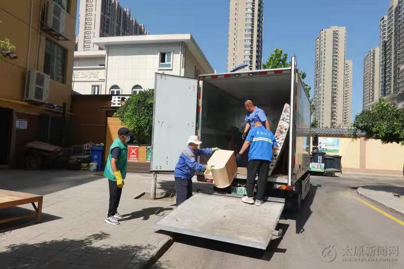 8月2日一早,一輛大件垃圾清運(yùn)車輛開進(jìn)位于晉源區(qū)的義井街道格林花園小區(qū)。工作人員走下車來,合力將廢舊的衣柜、床墊和床架抬上收運(yùn)車。上門收集,及時清運(yùn),曾經(jīng)生活垃圾摻雜在一起、大件垃圾隨意堆放已成歷史。