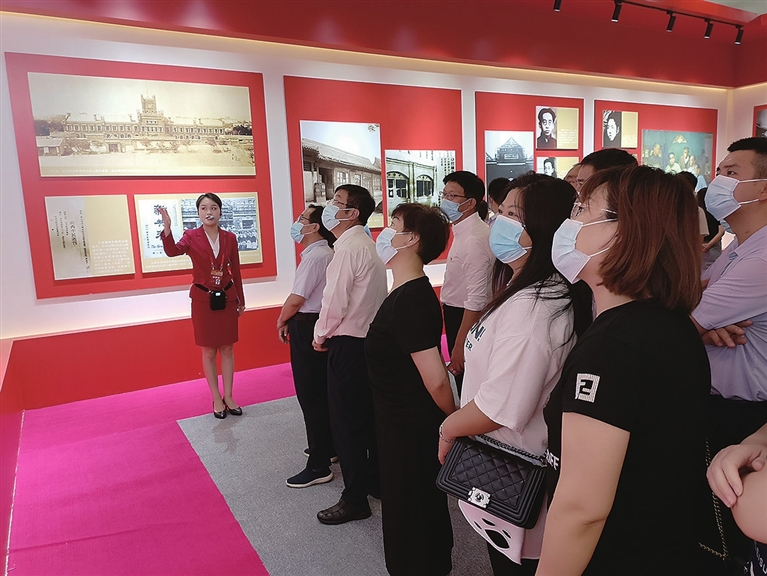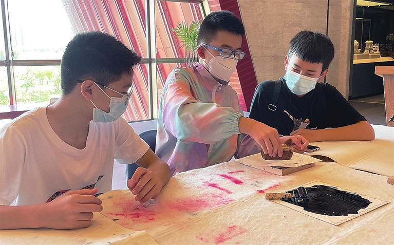 近段時間,北大寺村300畝荷塘荷花競相開放、爭奇斗艷,眾多游客慕名而來。該村因村內有座始建于北齊年間的崇福寺而得名,歷史上這里的荷花盛景非常有名,譽為“大寺荷風”,是晉祠外八景之一。圖為7月29日,太原市晉源區北大寺村,孩子們在老師的帶領下實感“映日荷花別樣紅”的意境。