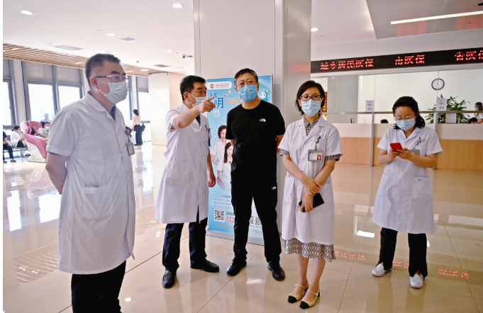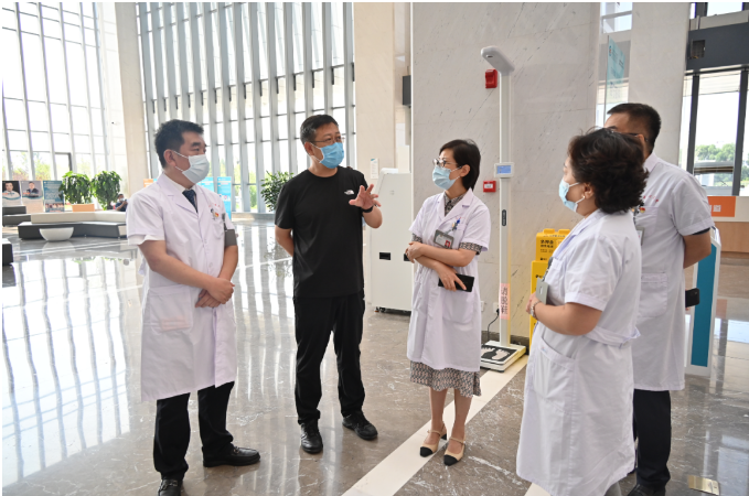 8月6日上午,太原市紀委監委駐市衛健委紀檢監察組組長李彬、組員胡婕對太原市中心醫院汾東院區疫情防控工作進行檢查督導。院黨委書記趙永生、副院長楊曉麗和相關部門負責人陪同檢查。