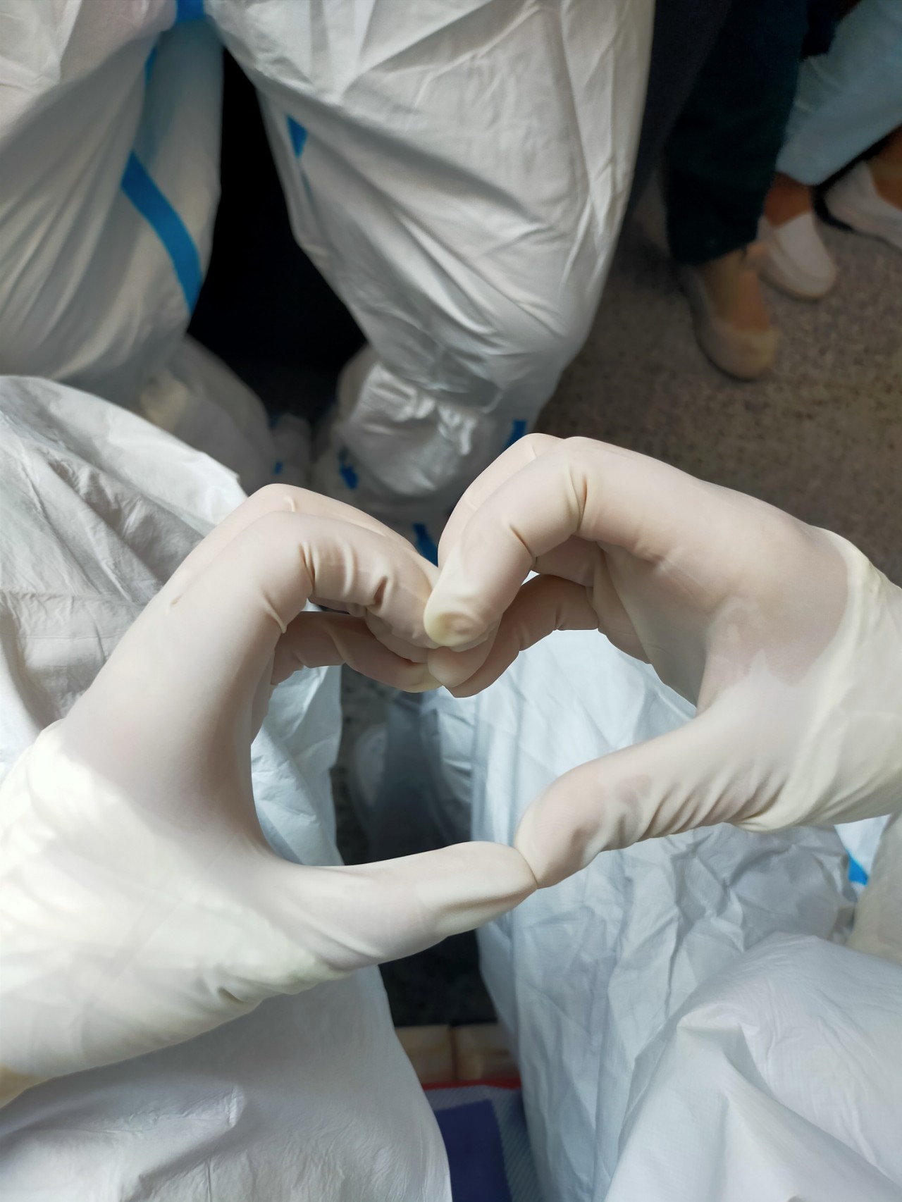 23歲的小姑娘穿著厚重的防護服,在鏡頭前比出勝利的V造型
