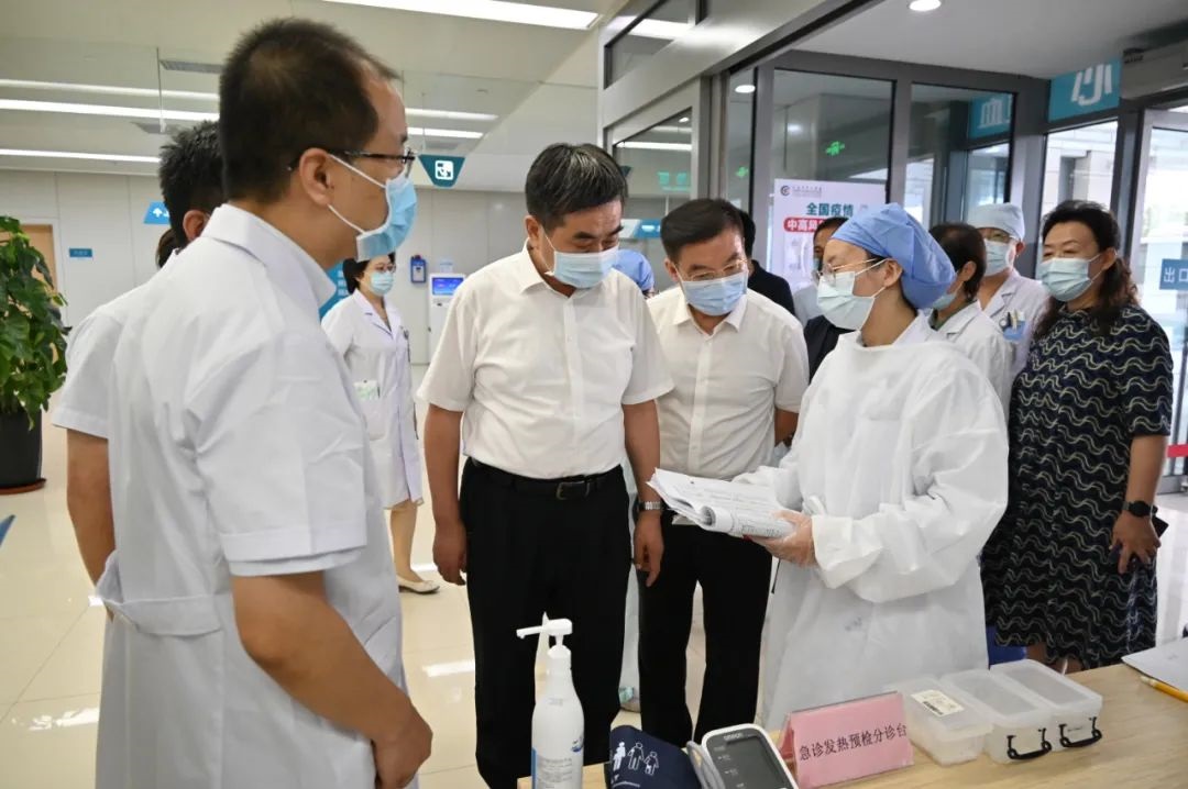 8月12日下午,太原市委副書記、市長張新偉,副市長陳博一行來到太原市中心醫院汾東院區,對醫院疫情防控工作進行檢查督導。市委衛健工委委員、市衛健委二級調研員張澤及市中心醫院院領導趙永生、李新華、楊曉麗陪同。