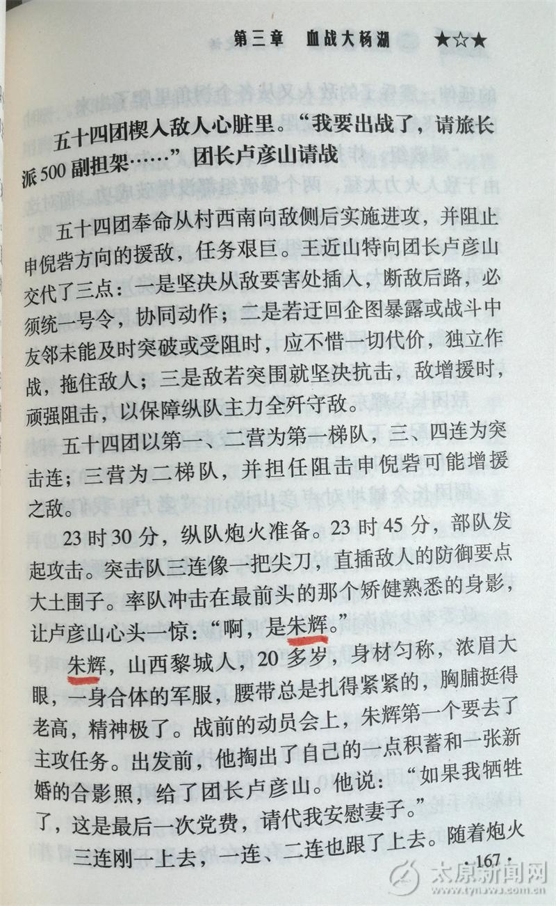尤其令人欣喜的是,楊宏偉還傳來了《十二軍史話:二野勁旅》中記載朱輝事跡的書頁(yè)截圖,以及通過其他資料查到的“黎城籍烈士”名單截圖。