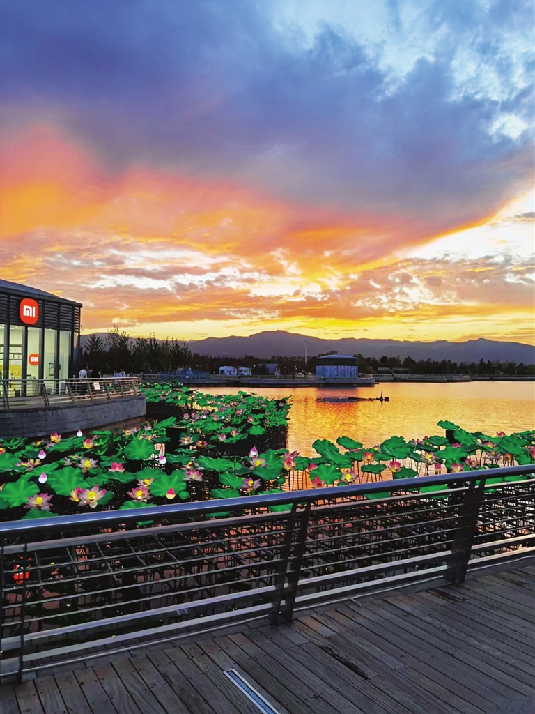 “太美了!”當天的晚霞引來市民關注。祥云橋上、晉陽湖邊,攝影愛好者們架起了“長槍短炮”,按動快門,留下晚霞的美好倩影。