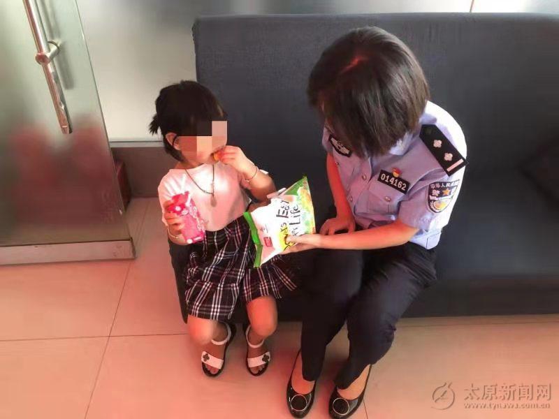 接到熱心群眾報警后,杏花嶺分局澗河派出所民警迅速趕往現場,只見孩子一聲不發,情緒低落,民警無法獲取有效信息,帶著孩子在小區內尋找了二十分鐘,始終未找到孩子家人。因是中午,天氣炎熱,民警便將其帶回派出所內一邊悉心照顧一邊幫助其尋親。在所內,細心的女民警幫孩子將穿反的鞋子換好,扎起了利落的小辮,又為孩子準備了鮮奶與零食,陪孩子玩耍緩解孩子焦慮的情緒。