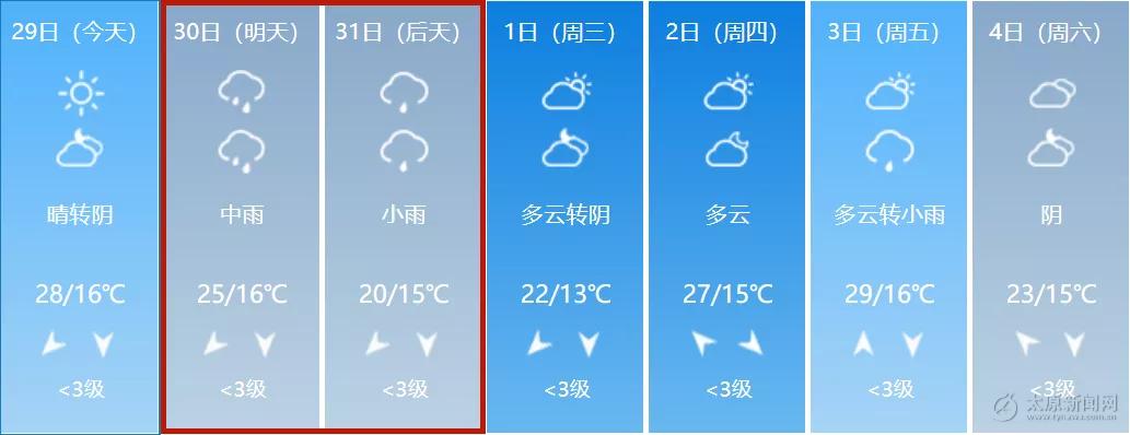 8月29日,太原氣象臺最新預報,受冷暖空氣共同影響,預計8月30-31日我市將出現(xiàn)較強降水天氣過程,并伴有短時強降水、雷暴大風等強對流天氣,過程降水量15~40毫米,局地可達50毫米以上。