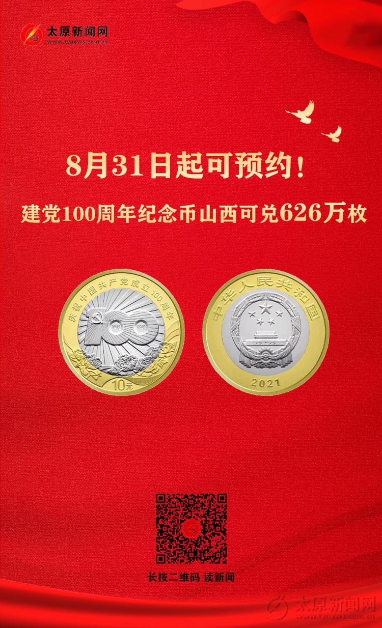 8月31日起可預約!建黨100周年紀念幣山西可兌626萬枚