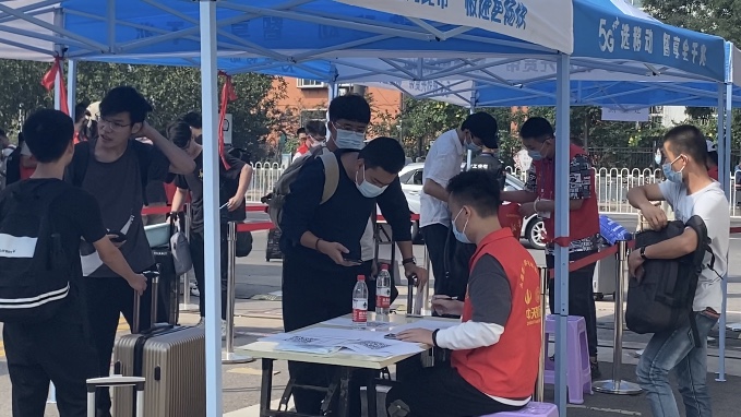 當(dāng)日,學(xué)校在太原機(jī)場、火車站、火車南站和榆次火車站都設(shè)了接站點(diǎn),新生可憑錄取通知書乘車,所有乘車人員務(wù)必全程佩戴口罩。學(xué)生到達(dá)校門后,在研究生身份核驗(yàn)處掃“研究生報(bào)到二維碼”填寫相關(guān)信息,經(jīng)核驗(yàn)后方可入校。