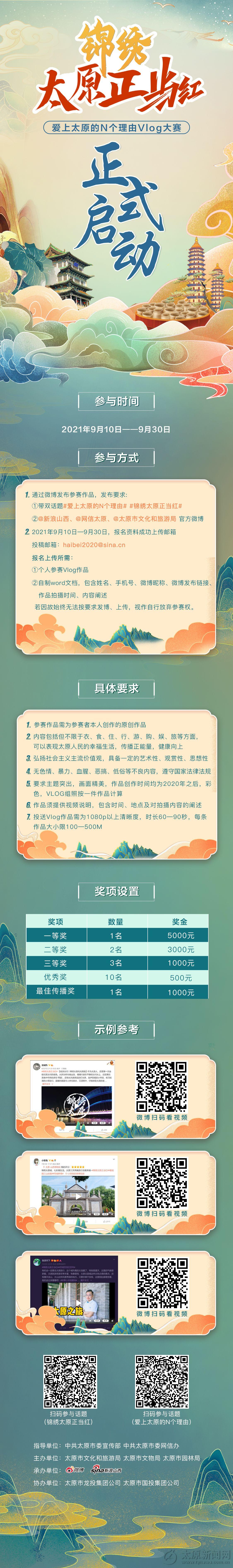 9月起,#愛上太原的N個理由#Vlog大賽已經開始征稿,并在9月16、17日兩天登上微博熱搜,網友們紛紛在微博平臺推薦太原的美景、美食、風土人情,花樣表白太原。中秋小長假即將到來,旅途中用鏡頭記錄的所見所聞,不僅可以留作紀念,還有可能獲得大賽的豐厚獎金!