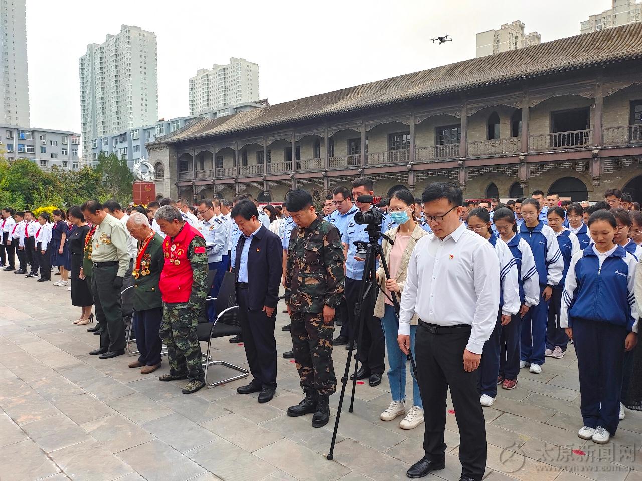 9月18日上午9時18分,山西國民師范舊址革命活動紀(jì)念館與全國多家抗戰(zhàn)類博物館、紀(jì)念館同步舉行“銘記歷史勿忘九一八”活動。