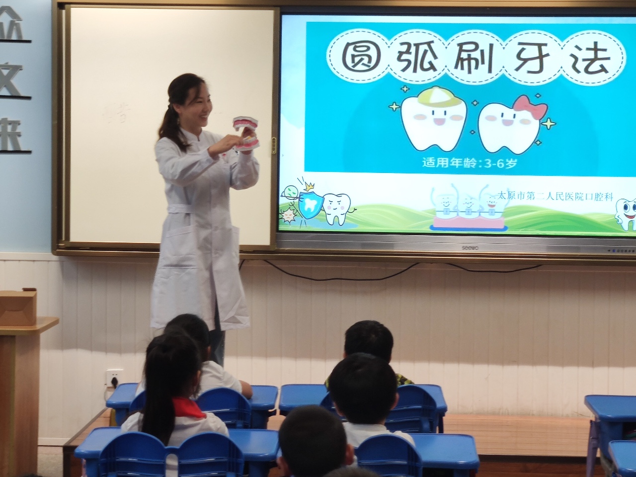 9月18號下午秋雨霏霏,涼意習習,盡管天公不太作美,但是由太原市第二人民醫院口腔科李文婕醫生帶隊的6名口腔醫護人員依然如約來到新建路小學,為學生們做了題為《從小養成刷牙習慣,一生樂享健康生活》的口腔健康講座。講座內容涉及到基本口腔健康知識、提高口腔疾病的預防能力和發現齲洞及時治療的意識等關乎兒童口腔健康的方方面面。