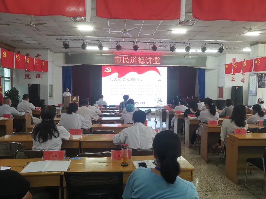 “敬業奉獻勇創新,建設祖國為人民,道德重如山,道德貴似金,人生道路上有德才能行……”9月22日下午,伴隨著悠揚的《公民道德歌》,市二院黨委宣傳部舉辦的“遵德守禮——公民道德宣傳日主題道德講堂”拉開帷幕,共40余人參加。