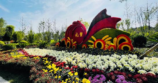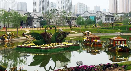 本屆菊花展新增兩處特色景點:一處是位于雙塔公園北門永祚橋東西兩側的“水之戀、魚之歡”花壇展區。東側的“水之戀”花壇以天鵝水中之戀為主要背景,西側的“魚之歡”以雙魚水中之歡為主要景點,寓意著一方水土養育一方人的鄉土情懷,祝福百姓在綠水青山中過著美好和諧的生活;一處是位于迎澤公園南門的新媒體藝術展“百菊幻影”,以激光鐳射技術將現實存在的菊花品種轉為光學濾鏡,投射在路上,打造出一幅百余米長的百菊爭艷長卷圖,市民游走其中,宛如踏花而行。