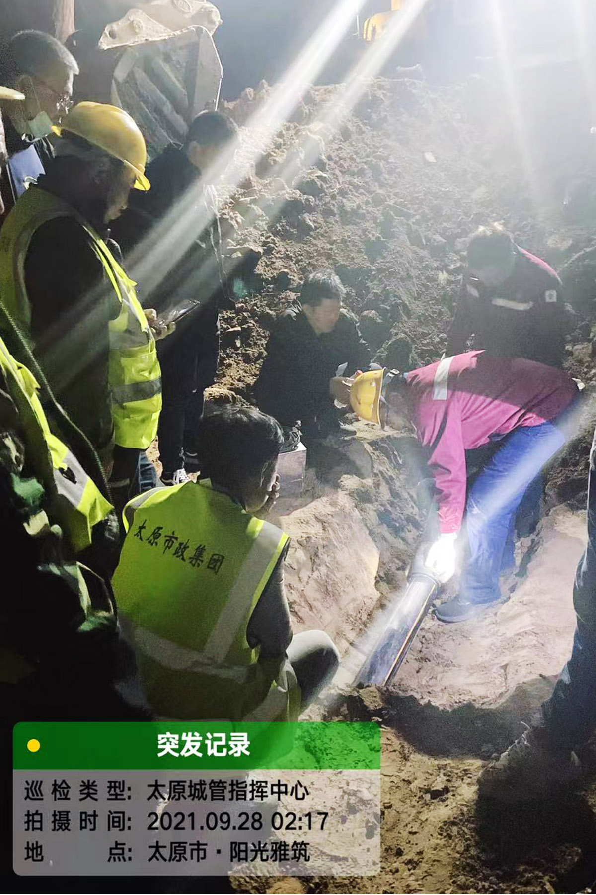 當(dāng)夜1時左右,小店區(qū)通達(dá)西街改造現(xiàn)場,施工人員鏟運(yùn)渣土作業(yè)時,不慎將淺層地下的燃?xì)夤艿琅隽眩瑢?dǎo)致天然氣泄漏,形成安全隱患。現(xiàn)場人員急忙撥打12319城管熱線求助。