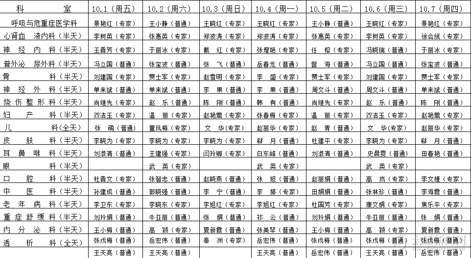 2021年國慶假期門診安排