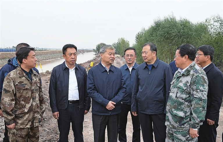 圖為省委常委、市委書記羅清宇在清徐縣烏馬河橋督導防汛救災和災后恢復重建工作。梁琛攝