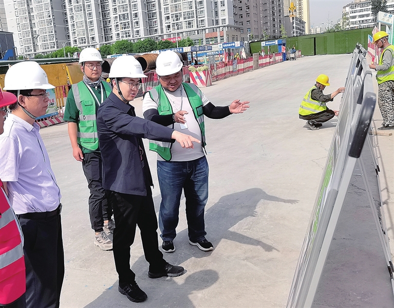 郝偉棟(左三)在安置房項目建設(shè)工地查看工程進展情況。