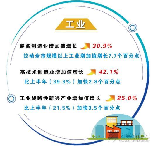 新舊動(dòng)能加速轉(zhuǎn)化,新興產(chǎn)業(yè)加速發(fā)展。制造業(yè)增加值占規(guī)模以上工業(yè)增加值的比重達(dá)到72.6%,比一季度提高6.9個(gè)百分點(diǎn);9月當(dāng)月增長(zhǎng)27.7%,是2019年以來(lái)當(dāng)月增速第三高的月份。裝備制造業(yè)發(fā)展壯大,增加值增長(zhǎng)30.9%,拉動(dòng)全市規(guī)模以上工業(yè)增加值增長(zhǎng)7.7個(gè)百分點(diǎn)。工業(yè)戰(zhàn)略性新興產(chǎn)業(yè)占規(guī)模以上工業(yè)增加值的比重達(dá)到23.1%;增長(zhǎng)25.0%,連續(xù)6個(gè)月保持20%以上,拉動(dòng)全市規(guī)模以上工業(yè)增加值增長(zhǎng)6.4個(gè)百分點(diǎn)。高技術(shù)制造業(yè)增加值增長(zhǎng)42.1%,連續(xù)3個(gè)月保持40%以上增速,拉動(dòng)全市規(guī)模以上工業(yè)增加值增長(zhǎng)6.4個(gè)百分點(diǎn)。