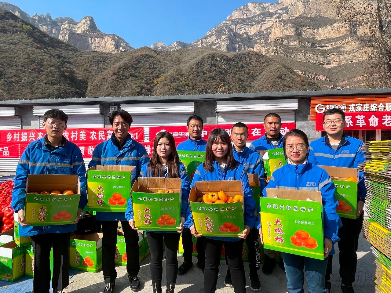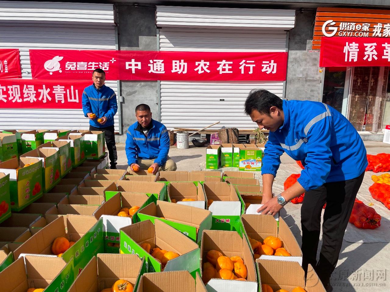 忻州市定襄縣戎家莊村地處深山,交通不便,村里年輕人在外務工,老年人則居家留守。在這個村子,很多村民家里種著柿子,但苦于外銷煩惱已久。對此,中通快遞集團山西管理中心聯合兔喜末端走進戎家莊村,為村民提供售賣、打包、裝運等一條龍服務,并通過公司內購、線上及線下同步銷售的方式,幫助當地村民銷售柿子2萬余斤,助力當地磨盤柿子走出大山。