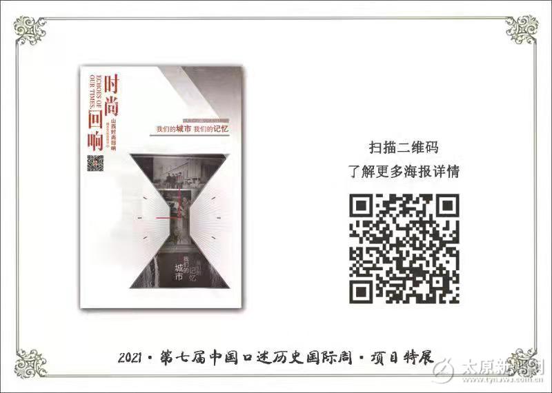 由中國傳媒大學發起并主辦的第七屆中國口述歷史國際周于2021年11月1日至7日在線上舉辦,主題為“開創·承繼——口述歷史的過去與未來”。山西時尚回響城市文化交流中心報送的“時尚回響項目”入選,并在本屆中國口述歷史國際周展出。