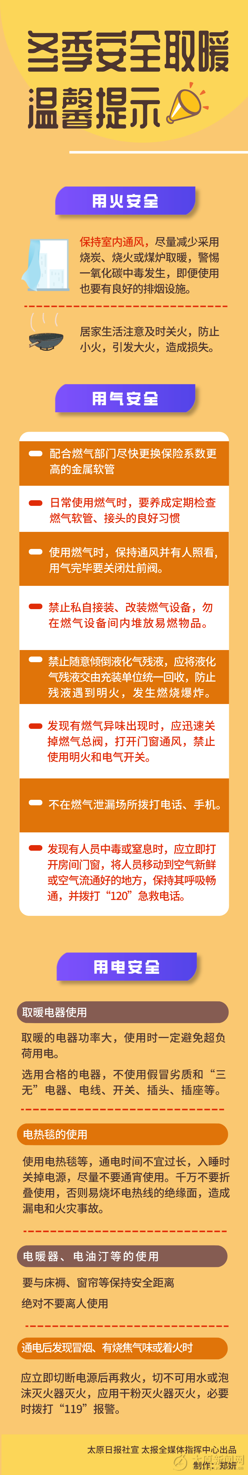 預報顯示,從11月4日開始,一股強冷空氣將襲擊我國北方廣大地區,大部分地區溫度將出現“跳水”式下降,我市溫度也將出現顯著下滑。隨著氣溫降低,一些居民家因取暖等原因,用火、用電、用氣將增加,由此引發的安全隱患需要引起注意。
