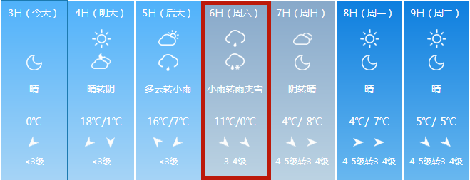 據太原市氣象臺最新預報,受強冷空氣影響,11月4日夜間~7日我市將出現雨雪、強寒潮天氣。其中,4日夜間開始出現降雨,6日轉為降雪,過程雨、雪合計降水量6~10毫米、局地可達15毫米以上;6~7日全市有4~6級、短時7~8級西北風;最低氣溫下降10~12℃,達強寒潮天氣;我市最低氣溫出現在8日凌晨,可降至-10~-7℃。