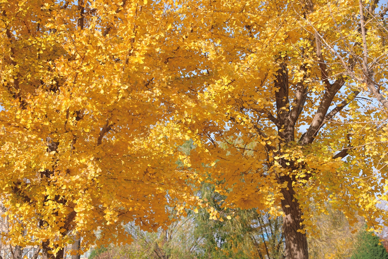 銀杏樹的枝條是完全交錯開的,如芭蕾舞演員在樹上跳著交叉的炫舞;她們的葉片是扇面狀的,像一張張幼兒肥厚可愛的小手,每當風來之時就興奮地拍手相慶。