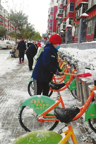 據介紹,當天上午,太原公交公共自行車公司的管理員全部出動,清掃“公車點”內以及周邊便道上的積雪。在12時前,主干道旁的“公車點”的積雪已基本清理干凈。
