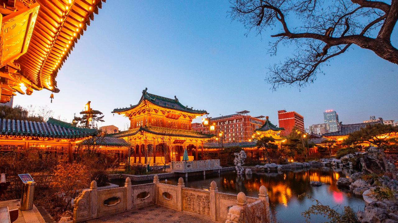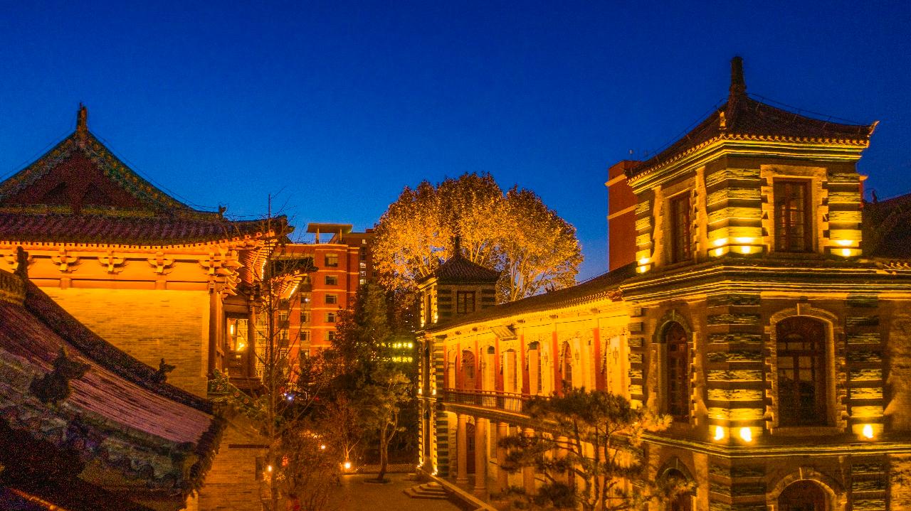 傍晚時(shí)分,梅山、自省堂、淵誼堂……流光溢彩,美輪美奐。皎潔的月光,璀璨的燈光灑落在古樸蒼翠,婆娑倒影之中,靜謐而肅穆的氛圍成為夜晚來(lái)這里的一種情懷。梅山,督軍府、山西省政府舊址已經(jīng)成為太原人的城市記憶和不忘情節(jié)。如今,晉商博物院已成為太原的一張靚麗名片,迎接八方來(lái)客。