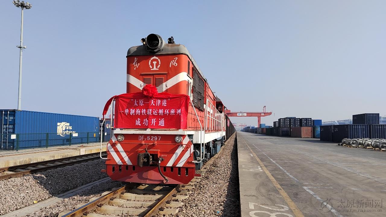 這是太原至天津港開通的首條一單制海鐵聯運往返班列,標志著晉津兩地主動融入“陸海內外聯動、東西雙向互濟”的開放格局取得了新成果,為進一步助推內陸地區成為開放前沿,開辟了綠色、集約、高效的“津海晉門”出海新通道。