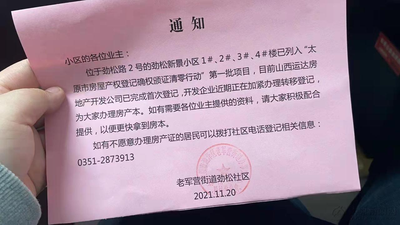 目前山西運達房地產開發公司已完成首次登記,開發企業近期正在加緊辦理轉移登記,為大家辦理房產本并征集每戶的意愿,不愿意辦理的,社區人員都做了詳細記錄,居民王大爺說:“太好了,真是太謝謝你們把這個好消息告訴我們,我們肯定會全力支持!”