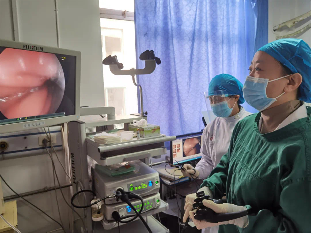 骨科住院患者、81歲高齡老人王奶奶因骨折術后突發急性消化道出血,血壓下降,經骨科全體醫護人員經過補液、抑酸及緊急配血輸血治療后,生命體征逐漸平穩,邀請消化科專家會診后,為進一步明確患者出血灶情況,又緊急邀請山西省人民醫院消化內鏡專家張晶主任會診,得知該患者需盡快行內鏡下檢查時,市二院呼吸消化科負責人劉夢華帶領內鏡團隊景艷紅副主任醫師、周紅艷護師、王鴻雁護師第一時間到達內鏡室做術前準備,并等待患者到來。