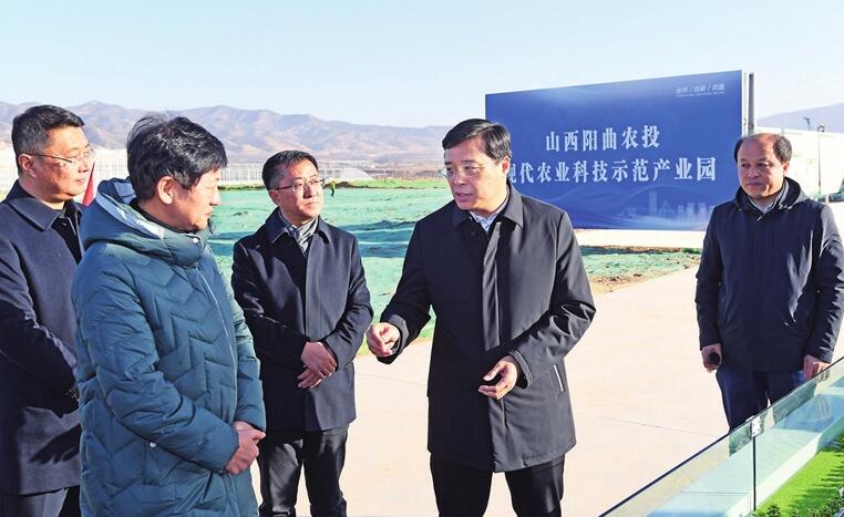 省委常委、副省長、市委書記韋韜在陽曲農投現代農業科技示范產業園調研項目建設情況。梁琛 攝