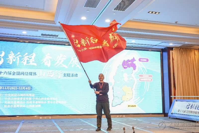 11月29日,“啟新程看發展”第十六屆全國網絡媒體山西行主題活動在太原正式啟動。山西省委宣傳部副部長張羽宣布活動啟動。中央網信辦網絡傳播局有關負責人為媒體采訪團授旗,并與山西省委網信辦主任董曉林、山西省文旅廳黨組書記劉永生、山西省委網信辦副主任郭江坪等與會領導共同推動啟動桿。