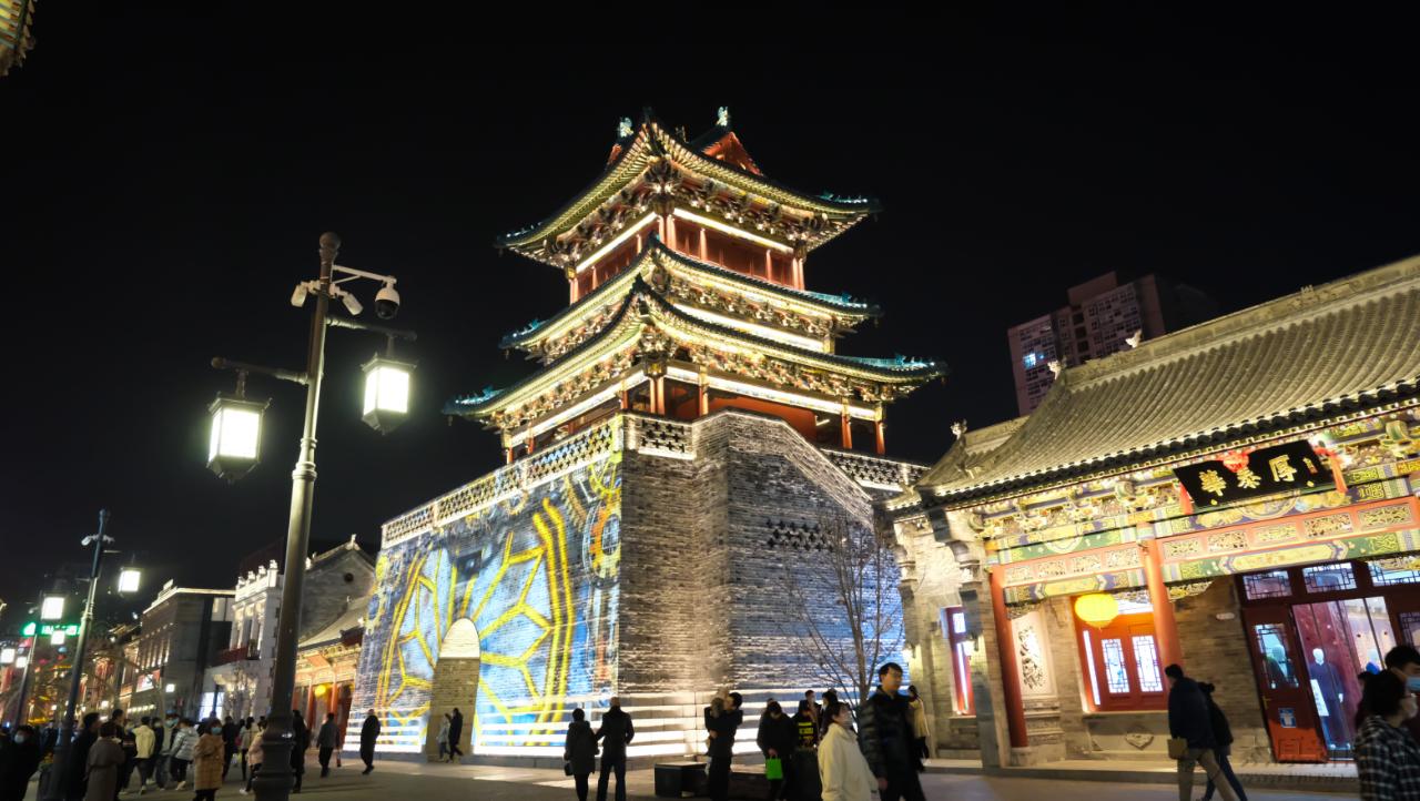 冬日的太原,時光向晚。華燈初上的鐘樓街,青磚綴彩,古風悠然,飛檐翹角處霓虹耀閃,古老與時尚在這里交融,歷史與現代在此地“重逢”,鐘樓古街生發出別樣的色彩。