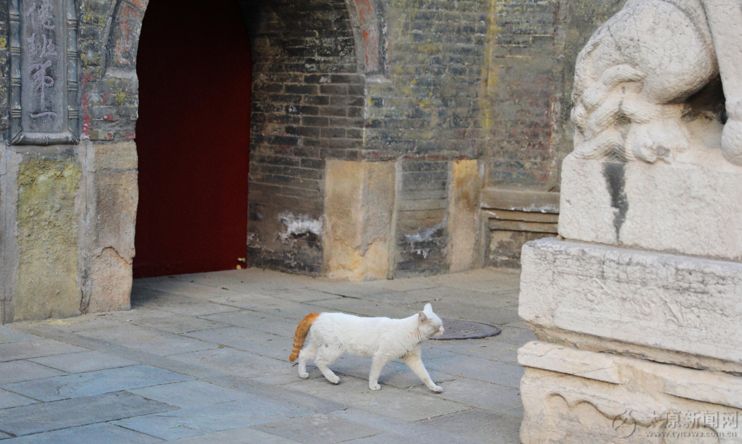 神明與文物,古建與都市在這神奇的院落里都沒(méi)有“宮貓”和“鳥(niǎo)獸”更加靈動(dòng)。一身雪白的皮毛加上一條花黃的大尾巴,與故宮里的“貓主子”如出一轍,而在古老松柏上停歇的禽鳥(niǎo),正是萬(wàn)物有靈的象征。
