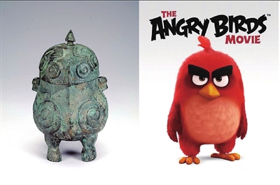 山西博物院選定的文物,是火遍全網(wǎng)的“憤怒的小鳥(niǎo)”鸮卣。鸮卣,為商代晚期青銅器精品,盛酒器,高19.7厘米,口長(zhǎng)徑12厘米,短徑8.6厘米。1956年石樓縣二郎坡村出土。形如兩鸮相背而立。蓋為雙鸮首,環(huán)目,尖喙,彎眉,蓋中央置四阿頂方柱鈕,飾雷紋。腹作雙鸮身,子口微斂,垂鼓腹飾卷曲羽翼紋。身下為四爪,兩兩相背。蓋腹相合,兩鸮昂首背立。該器物不僅實(shí)用,也是精美的藝術(shù)品,得到一眾網(wǎng)友的喜愛(ài)。