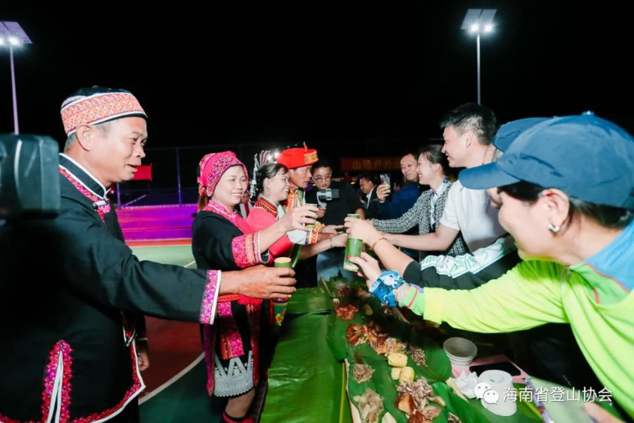 在活動現場,戶外達人們不僅體驗了拉烏龜、夾檳榔、趕椰子、竹竿舞等民族體育趣味互動,逛逛當地特色的農產品集市,還在南春新村體驗了一把低空扁帶、叢林飛越(攀樹)教學帶來的快感。大家在山林間攀爬飛越,感受著保亭熱帶雨林山地戶外獨特的魅力。傍晚在推介會上,保亭黎族苗族自治縣人民政府黨組成員呂妍致歡迎詞,向大家介紹了保亭豐富的自然資源與熱帶雨林溫泉康養度假宜居地建設,并希望大家建言獻策,共同推動保亭山地戶外與鄉村旅游新發展。隨后,主辦方播放了保亭山地戶外運動宣傳短片進行推介。入夜,大家品嘗著美味的黎苗長桌宴,欣賞著歡快的黎苗歌舞,與當地黎苗同胞進行互動,好不熱鬧。