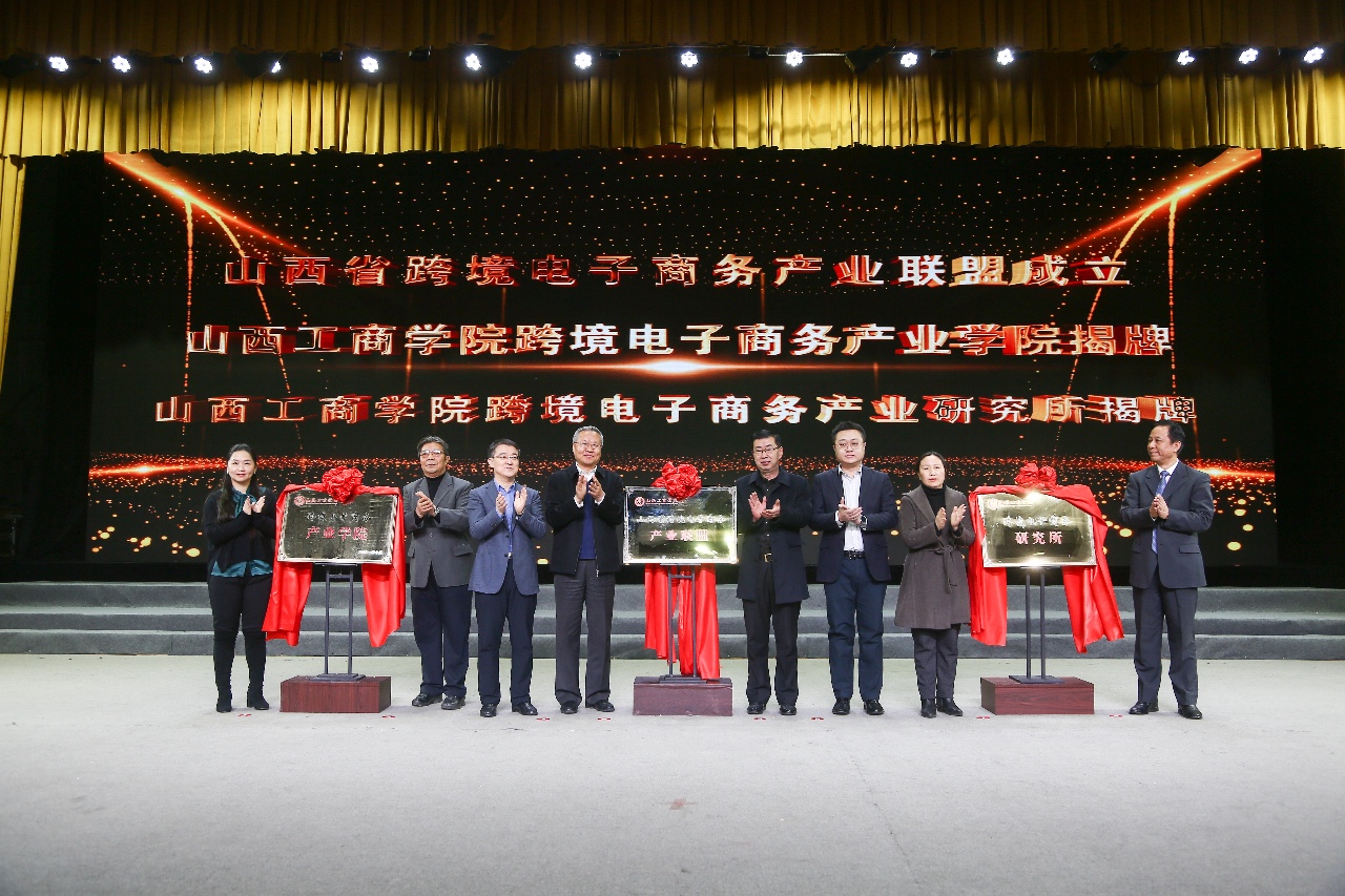 會上,山西省商務廳外貿處、太原市商務局、山西省跨境電子商務協會、太原市跨境電子商務協會、山西財經大學平臺經濟產業學院部分領導,共同為山西省跨境電子商務產業聯盟、山西工商學院跨境電子商務產業學院、山西工商學院跨境電子商務產業研究所揭牌。