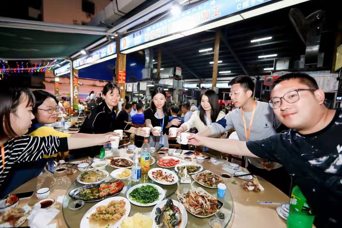 正在采訪團用餐時也是三亞友誼路下崗職工海鮮加工廣場就餐高峰,前來選購海鮮的市民游客絡繹不絕,海鮮加工檔口熱鬧非凡。三亞友誼路下崗職工海鮮加工廣場始建于2008年,位于三亞市解放路和三亞灣路兩大主干道的樞紐中心,交通便利,占地面積5000平方米,現有50個海鮮加工攤位,15個小吃攤位,50個海鮮銷售攤位,可同時容納約4000人用餐,已成為市民游客在三亞品嘗海鮮的首選地之一。