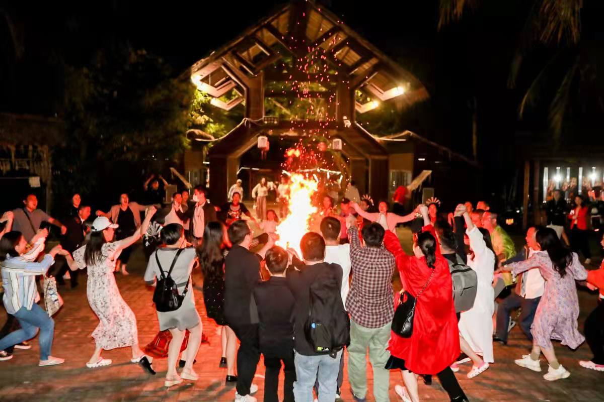 晚上7點(diǎn),媒體采訪團(tuán)齊聚餐廳舉行歡送晚宴“話離別”,現(xiàn)場(chǎng)沉浸在一片歡樂的氣氛中。采訪團(tuán)成員品美食、賞黎族音樂,在舞臺(tái)上一展歌喉。篝火照亮了每個(gè)人的笑顏,晚宴熱鬧不已。歡送晚宴還特別設(shè)置了頒獎(jiǎng)環(huán)節(jié),頒發(fā)了終極最佳發(fā)稿獎(jiǎng)一、二、三等獎(jiǎng)項(xiàng)。