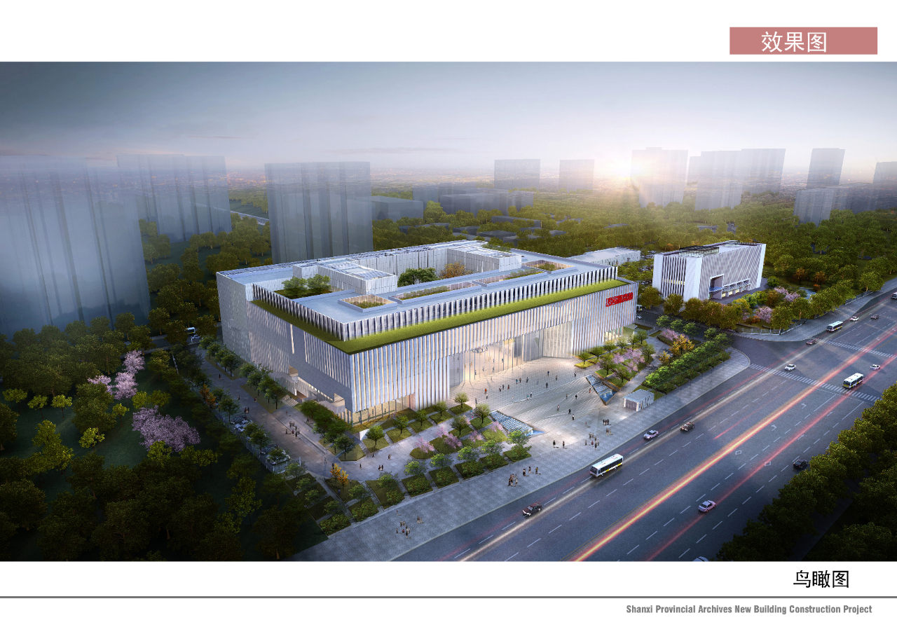 該項目是山西省首個EPC項目,總建筑面積56841.86平方米,建設(shè)內(nèi)容主要包括檔案庫房、對外服務(wù)用房、檔案業(yè)務(wù)技術(shù)用房、辦公室用房、附屬用房、地下車庫、地下人防設(shè)施、室外道路、硬化、綠化、景觀及室外管網(wǎng)工程等。