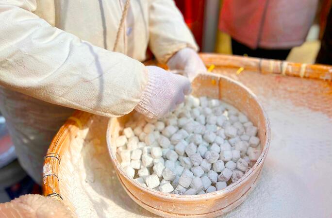 活動西北角處,元宵手藝人現場為大家表演滾元宵,講述元宵的由來和制作工藝。大人孩子圍了一圈認真地聽著,了解傳統節日和中國民俗。現場滾元宵的做法是“五滾五過”,滾出的元宵小巧可愛,旁邊開水鍋中元宵上下翻滾,居民們品嘗著美味的元宵,贊不絕口。