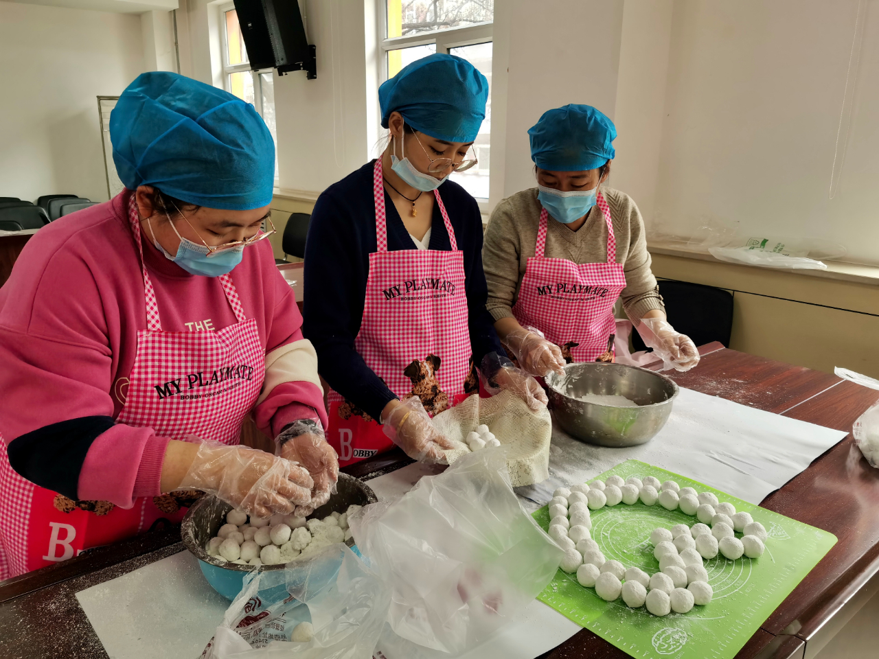 現場一派熱鬧景象,不時傳出陣陣歡笑。大家挽起袖子忙得不亦樂乎,舀面粉,給餡料過漿,餡料放進簸箕里不停地滾動,元宵成形如雪球般越滾越大,在輕松活潑的氛圍中傳遞著快樂。經過“六滾六過”,三個多小時后,二百多斤、近五千顆純手工制作的元宵做好了,個個白白胖胖,煞是喜人。每個元宵的制作,都展現了濃濃的“煙火氣”與“人情味”,增強了職工相互間的凝聚力與歸屬感。做出的元宵每位職工人手一份,感受濃濃的節日氛圍和中心“大家庭”的關懷溫暖。