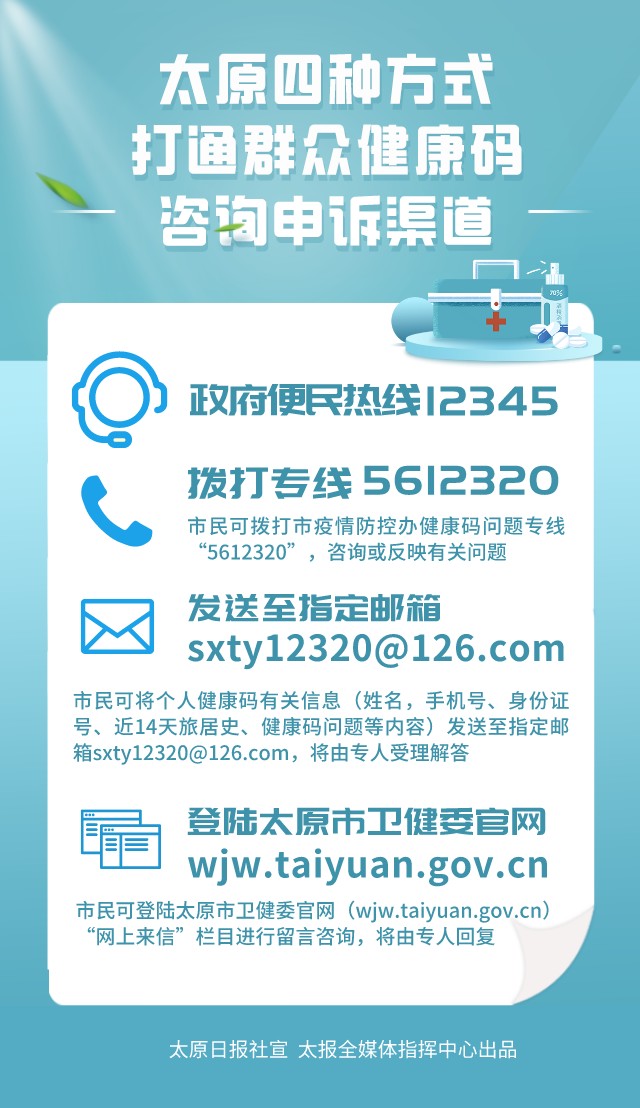 【海報】太原四種方式打通群眾健康碼咨詢申訴渠道